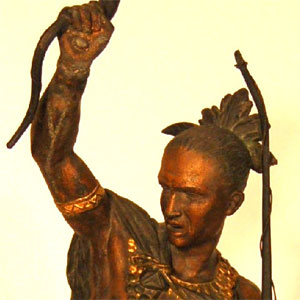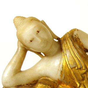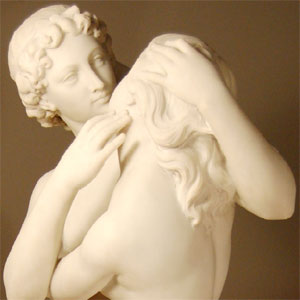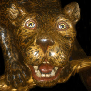 Photo collage: The Leopard sleigh (Versailles Palace); Details of Reredos with Enthroned Virgin and Child (Nathaniel Hitch, Trinity Scottish Episcopal Church, Ayr); Reclining Buddha and Native American sculptures (Barnum Museum, Bridgeport, CT); Cupid and Psyche (Chauncey Ives, Barnum Museum); Handle from P.T. Barnum's vermeil coffee creamer (Barnum Museum); Hand of Pandora (Chauncey Ives, Barnum Museum).